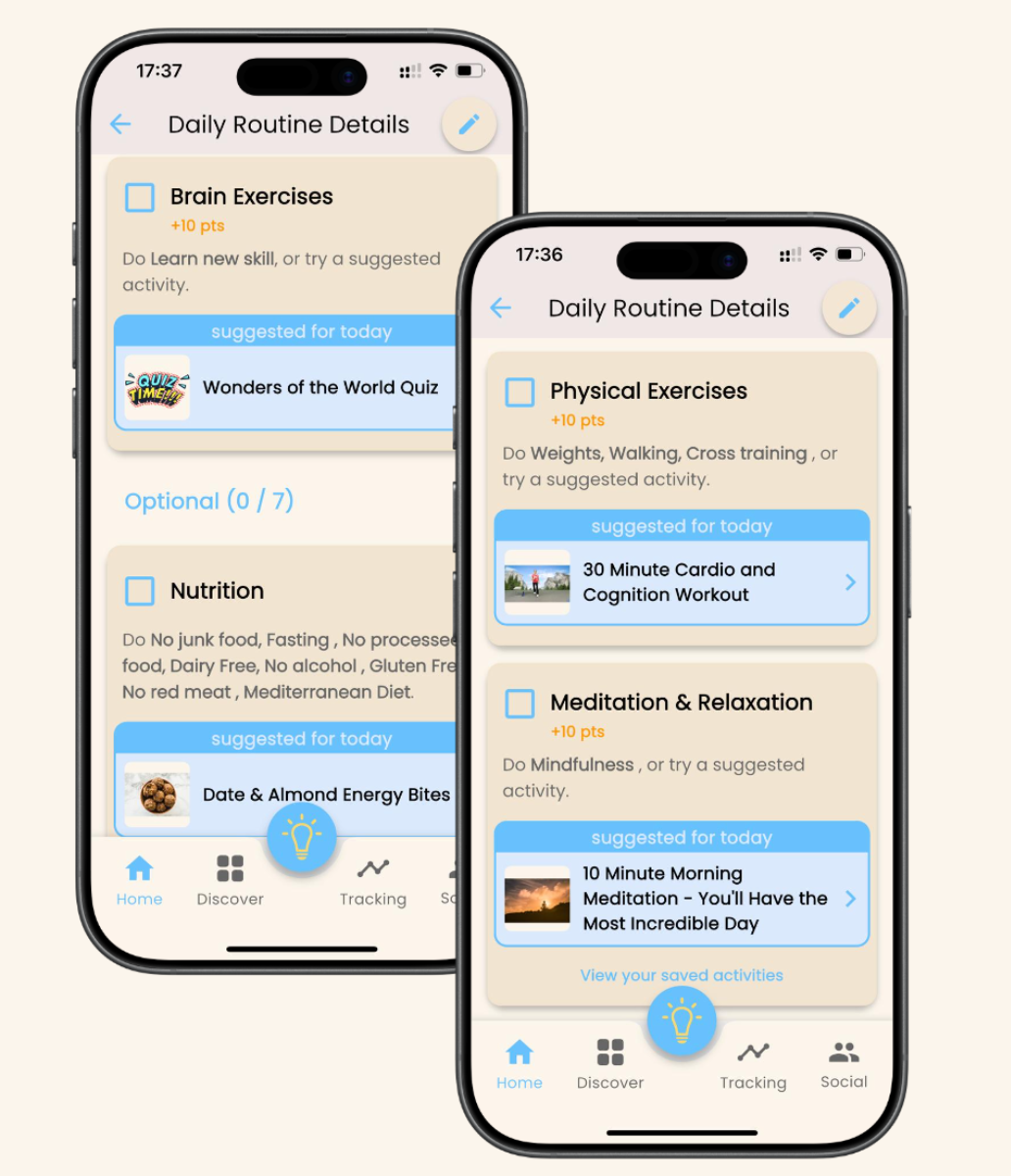 Designed by people with Parkinson's, these routines consist of tasks to help you manage your symptoms effectively. Join the fun, earn points, and track your progress.