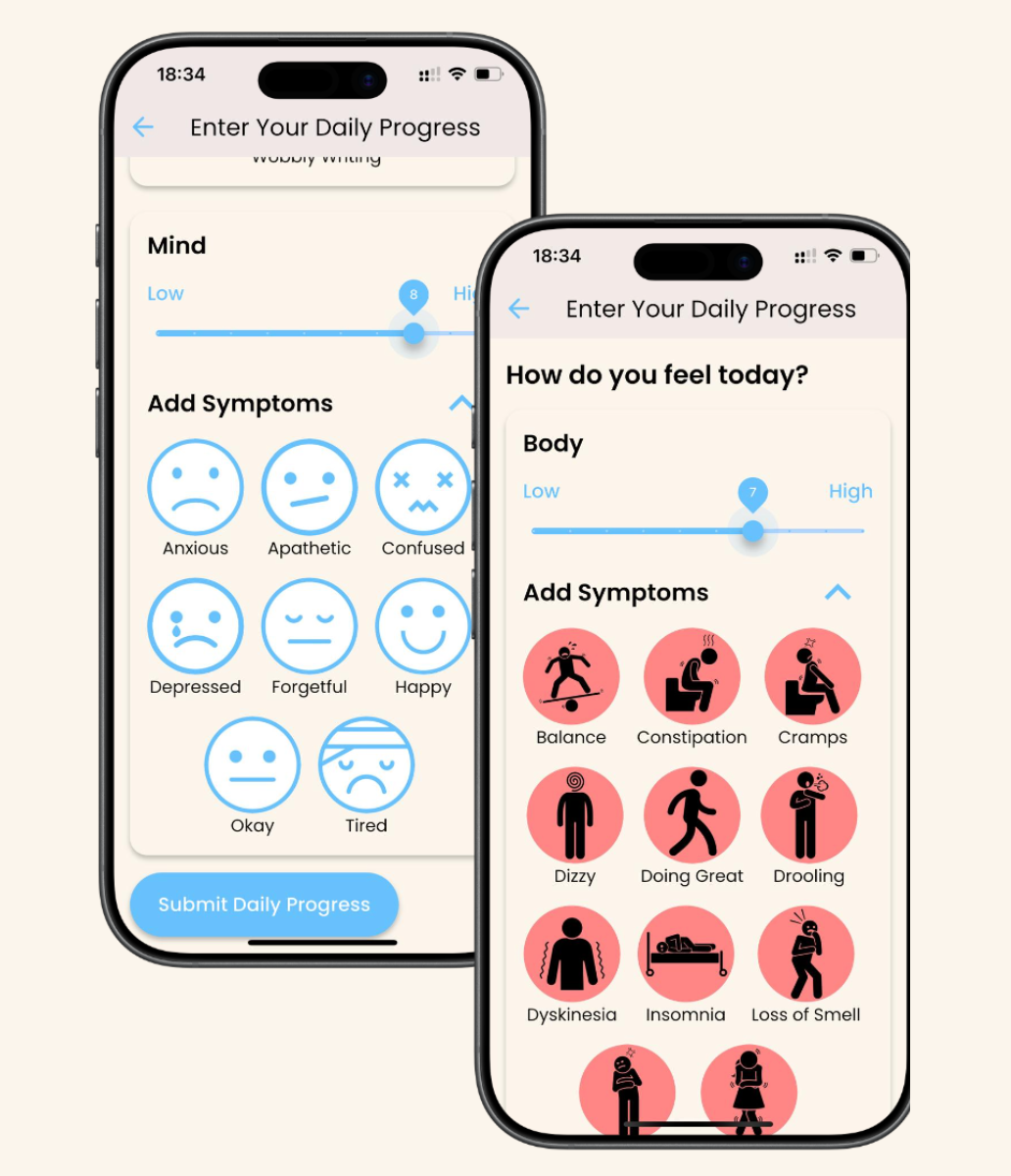 Keep a clear record of your Parkinson’s symptoms and see how they change over time. Tracking daily allows you to spot patterns, understand what affects your condition, and share accurate insights with your healthcare team to make better-informed decisions.